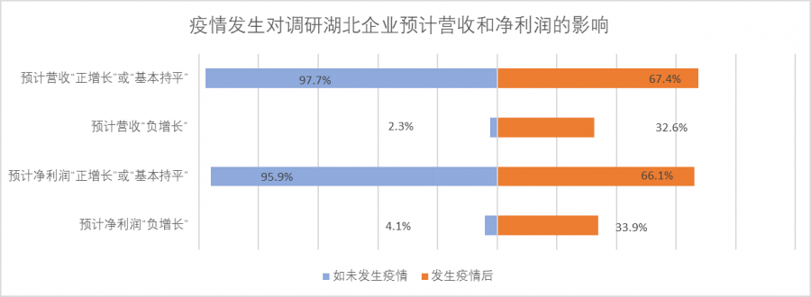 1.从疫情影响程度看,湖北省内企业较省外企业高两成左右