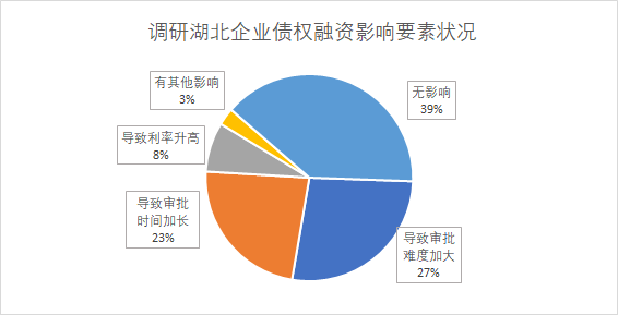 二是银行债权融资难,普遍期望获得政策性帮扶。调研显示,60.8%的湖北企业认为疫情对银行债权融资有明显的影响,主要影响因素包括:“审批难度变(26.7%)”、“审批时间加长(23.2%)”。部分调研企业表示因复工时间不确定,导致无法完成贷款审批的实地调查程序;部分中小科技企业表示因缺乏抵押物而难以获得银行债权支持的担忧。企业普遍希望政府能出台贴息、免息、贷款延期等政策性帮扶措施,共有60余家企业表示希望引入担保、再担保等机构支持获得银行贷款。